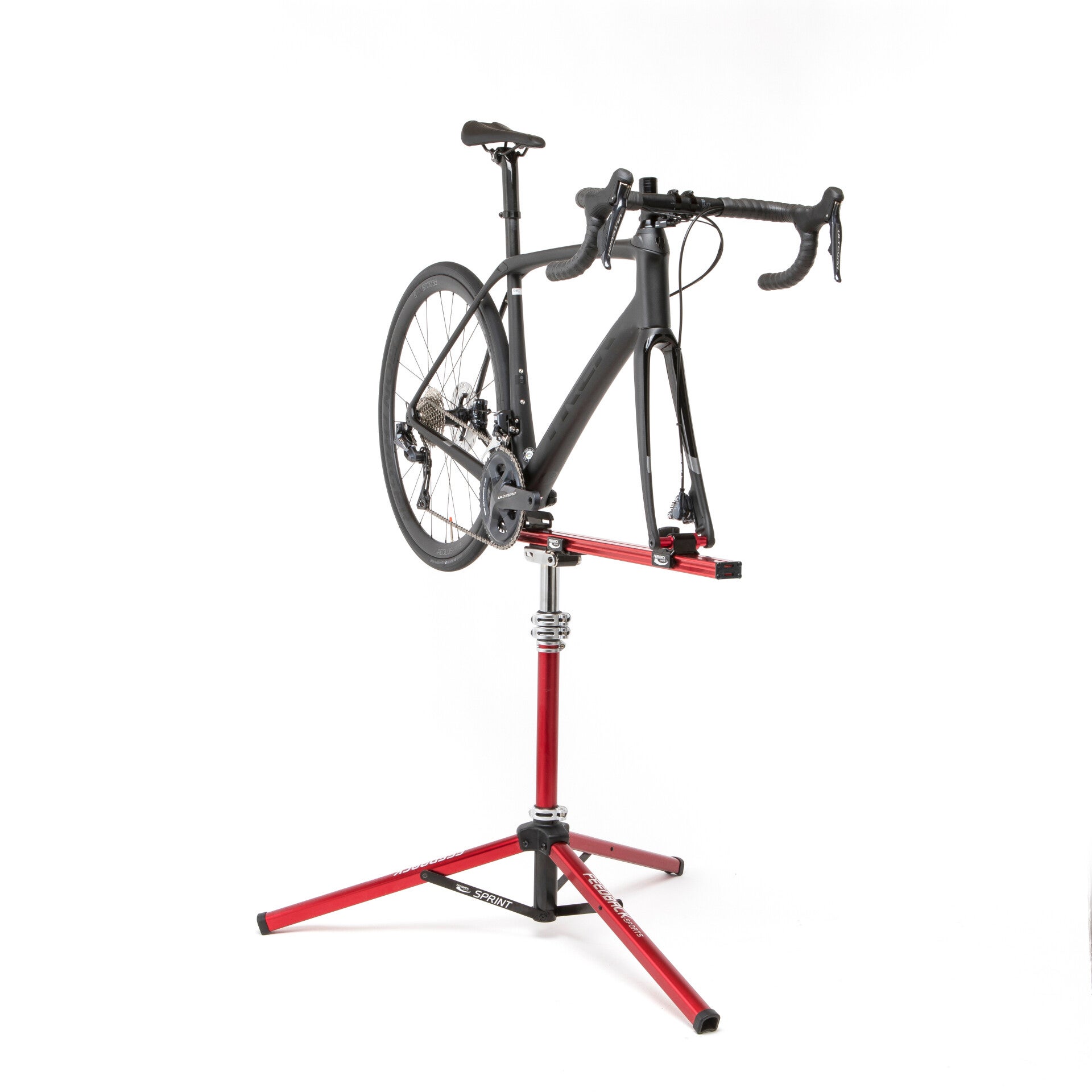 De sprint is een professioneel werkstandaard met stabiele driepoot. In hoogte verstelbaar en 360 graden draaibaar. Compatibel met quick release, 12mm en 15mm (incl. boost) steekas aansluitingen. Lichtgewicht, gemakkelijk op te bergen en mee te nemen.